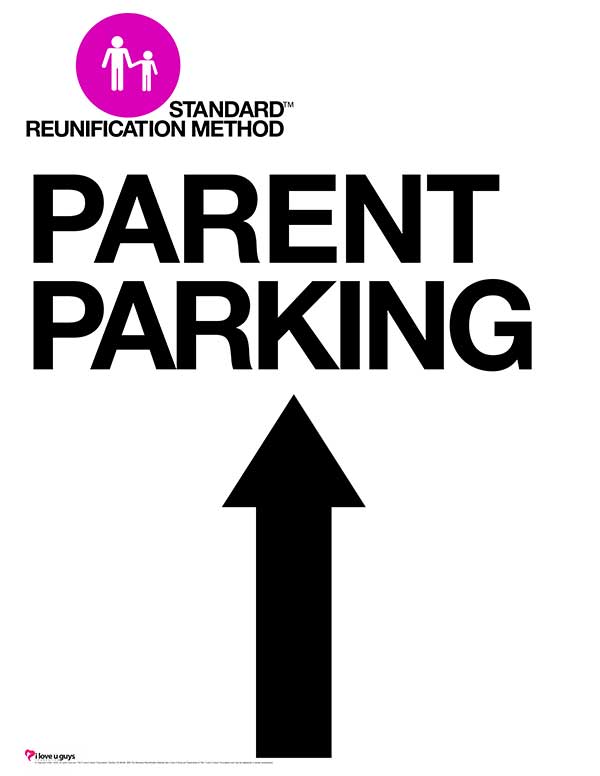 Signage to use when staging the reunification site during an exercise and an actual reunification event.